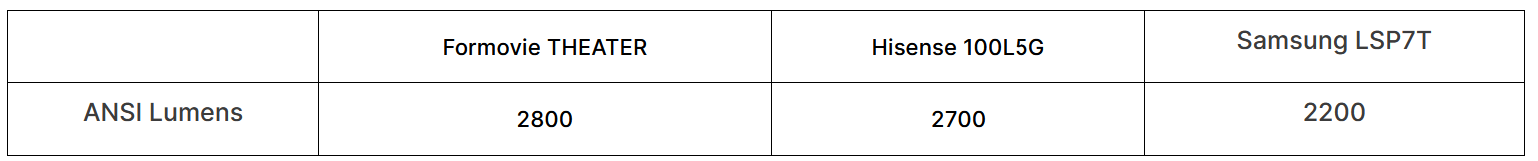 A projector with a high contrast ratio, like the Formovie THEATER with a 2800:1 contrast ratio, delivers more detailed images, with deeper blacks and more vibrant colours. As demonstrated in the side-by-side comparison conducted onThe Hook UpYouTube channel, contrast is crucial in determining the quality of the projected image because it’s the difference between the darkest blacks and the brightest whites a projector can produce.